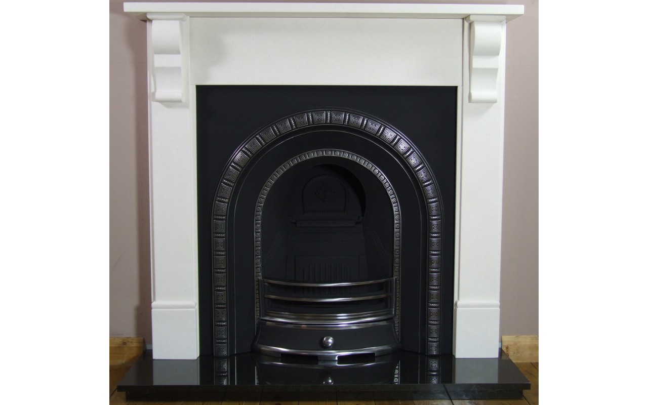 The Henley insert is definitely one of our favourites. Featuring a subtle, striped pattern to its highlighted arch, it has an elegant, modern feel that teams beautifully with the chunky Corbel Limestone Fireplace in this fireplace package.